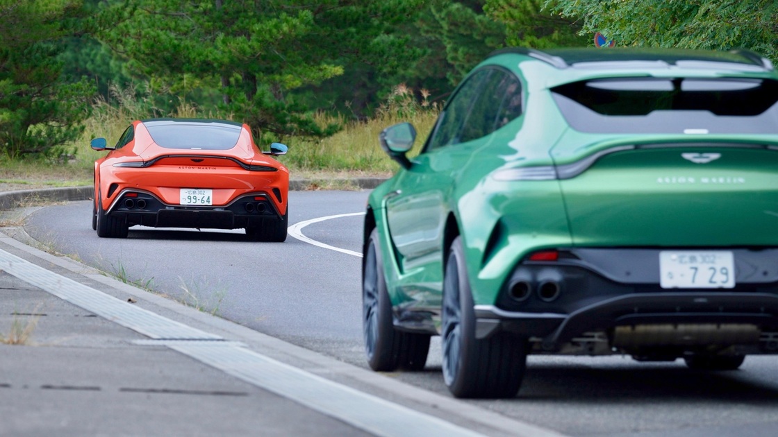連なって出発するアストンマーティンの景色は、
