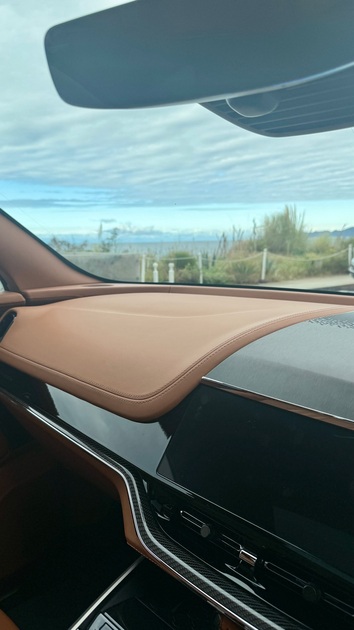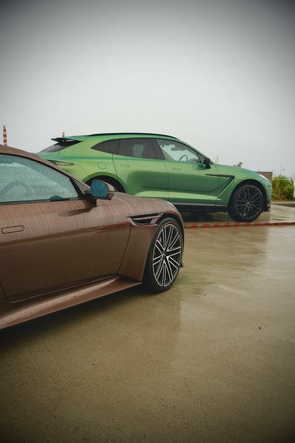 荒れた空の下でも、アストンマーティンの車内はただ静かに、